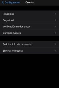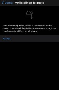 En configuración, hacemos click en Cuenta > Verificación en dos pasos